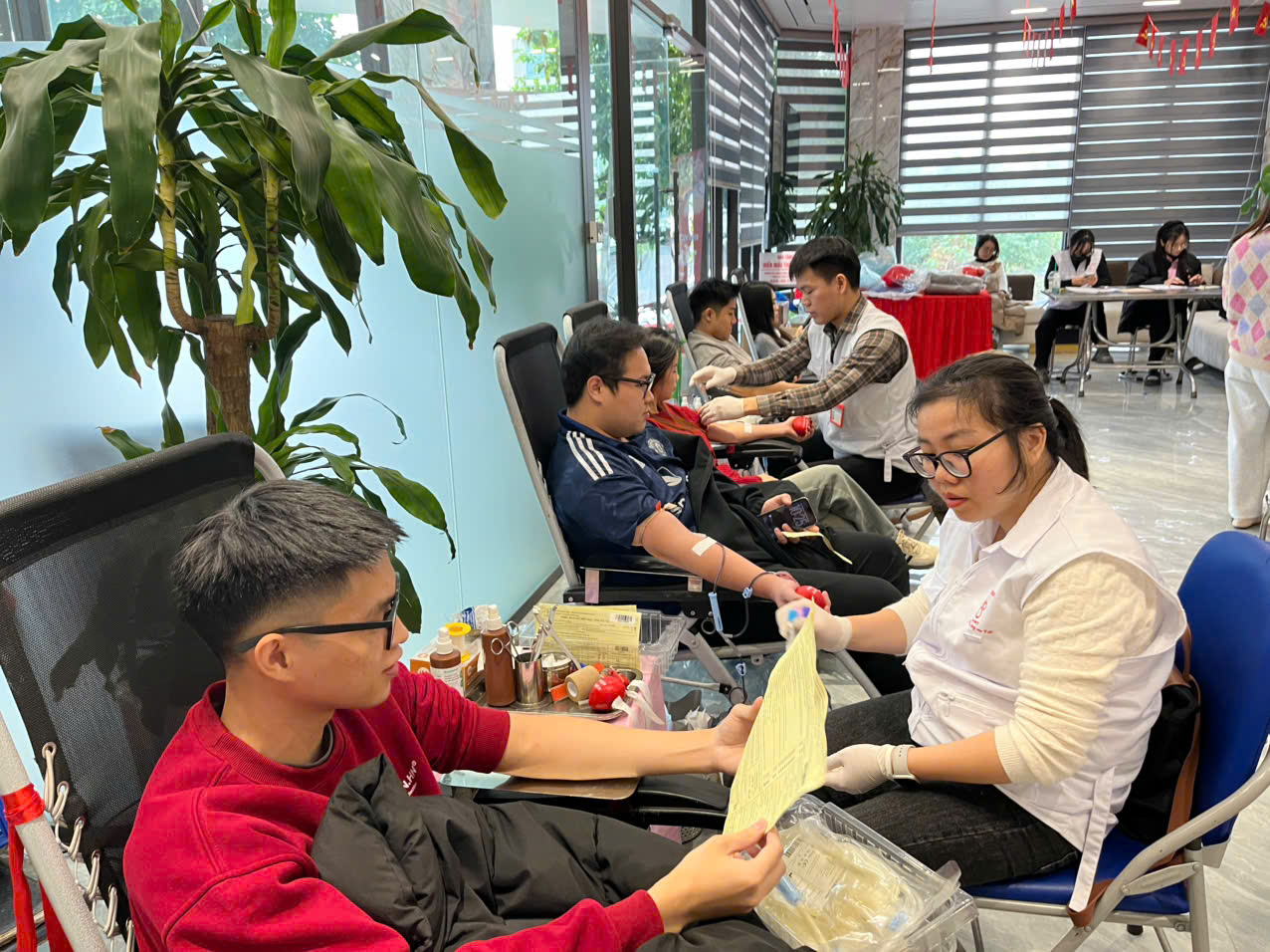 Chương trình ghi nhận 64 lượt đăng ký của Cán bộ Nhân viên. Qua sàng lọc, 50 anh, chị đủ điều kiện sức khỏe đã trực tiếp tham gia hiến máu, đóng góp 50 đơn vị máu quý giá – những “giọt hồng” mang theo hy vọng sống cho các bệnh nhân đang cần truyền máu.